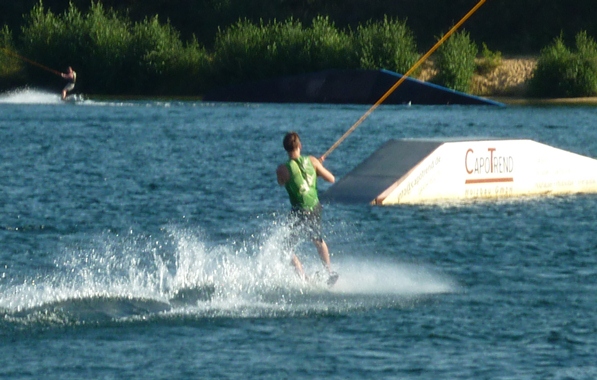 Am See befindet sich eine der größten und modernsten Fünf-Mast-Wasserskianlagen in Europa. Mit dem 960 m langem Umlaufseil können bis zu 22 Wasserski-Läufer gleichzeitig gezogen werden, so dass die Wartezeiten entsprechend kurz sind. Durch die entschärften Kurven bietet die Anlage optimale Voraussetzungen für den schnellen Lernerfolg. Doch auch Könner kommen durch die Höhe der Masten auf Ihre Kosten; so erlauben sie es, auch große Sprünge zu machen. Qualifiziertes Personal und ein großzügiger Wake-Shop lassen bzgl. der Wahl des richtigen Equipments keine Wünsche offen. In den Wintermonaten ist die Anlage geschlossen.